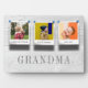 Create an elegant unique gift for grandma with this three instagram style photo collage plaque. A rustic wood effect print with "GRANDMA" or your grandma's preferred nickname in sophisticated grey lettering and the grandchildren's names overlaid on the photo's.
