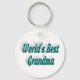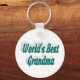 Key chain with World's best grandma in 3D blue green text. Round and square key chains available in several sizes.