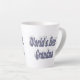 Latte mug with World's best grandma in 3D blue-grey text. Mug available in several styles and colours.