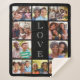 A black photo collage keepsake blanket that your grandma will treasure and enjoy for years. Personalise with ten photos of her grandchildren and family. "LOVE" is written down the middle in elegant white typography.