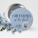 Grandma of the Bride Blue Bridal Shower Pin on Button. Featuring beautiful elegant dusty slate blue watercolor flowers on a light slate blue background. Check out the other matching buttons in the collection for other important guests such as the maid of honour, bride to be, bridesmaid's and more!