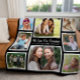 Give Grandma a keepsake she'll treasure with this custom photo collage blanket. You can personalise with eight family photos of grandchildren, children, pets, etc., in white frames on a black background. You can also customise the expression to "I Love You" or "We Love You," whether she is called "Grandma," "Nana," "Mommom," etc., and add the grandchildren's and other names, all in white script and typography.
