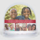 A seasonal red snow globe keepsake for the best grandma ever featuring a four photo collage of her grandchildren and family on the front, "Merry Christmas Grandma" in elegant white serif typography and names in simple white lettering. Add a 5th photo on the back.
