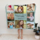 A perfect gift for the world's best grandma. This personalised sage green photo collage fleece blanket features eight photos of her grandchildren, children, other family members, pets, etc. Customise "World's Best Grandma" and whether she is called "Grandma," "Nana," "Abuela," etc., and add the grandchildren's names as a signature.