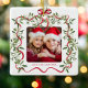 Grandma Wavy Frame Bow Greenery Photo Christmas Ceramic Ornament