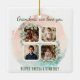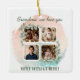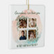 Celebrate Grandma with this beautiful personalized ornament featuring a custom photo collage, a delicate eucalyptus design and soft watercolor accents, framing four family photos. The loving message 'Grandma, we love you' makes it an unforgettable gift for birthdays, holidays, or just because. Customize with your favorite photos and names for a truly unique gift.