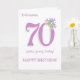 A chic 70th Birthday Card for your grandmother with a vintage look. The front cover message is, 'To Grandma 70 years young today! HAPPY BIRTHDAY', There is a spray of scented summer flowers, Albertine Rose, Lavender and Mock Orange (Philadelphus), at the top of the number '0' that tones with all the lettering, which is in a pinkish light mauve color. Please feel free to personalize the inside message if you wish.