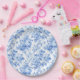 Grandmillennial Blue Toile Roses Floral Paper Plat Plate