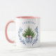 This mug has a Christmas tree in a Blue and White Chinoiserie pot with a pink bow. You can personalise with a name.