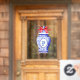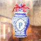 This window cling design features a very chic blue and white Chinoiserie ginger jar vase with a red bow. You can personalise with an initial.