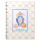 This chic notebook features a chinoiserie ginger jar with an orange bow and pumpkins on a orange bamboo background. You can personalise with your monogram.