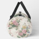 This image displays a duffel bag adorned with a richly detailed and elegant floral tapestry pattern, evocative of classic grandmillennial or vintage chintz aesthetics. The design features an abundant arrangement of blossoms in soft pinks, muted yellows, and subtle blues, intertwined with lush green and teal foliage, all set against a textured, antique white or cream background. The intricate details and sophisticated colour palette create a timeless and luxurious feel. Equipped with sturdy, dark-coloured straps and a secure zipper closure, this bag is a functional yet beautifully designed accessory, perfect for travel, gym use, or adding a touch of sophisticated, nostalgic charm to any ensemble.