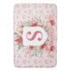 This Christmas bath mat design has a preppy grandmillennial design featuring a floral crest surrounded with berries with a monogram letter in the center.