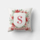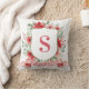 This Christmas pillow has a preppy grandmillennial design featuring a floral crest surrounded with berries with a monogram letter in the center.