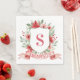 This Christmas napkin design has a preppy grandmillennial design featuring a floral crest surrounded with berries with a monogram letter in the center.
