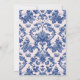 This Christmas party invitation has a preppy grandmillennial design featuring a pink ornament with a Chinoiserie design with a blue and blush pink arched border around the edge. The front and back have a coordinating damask pattern.
