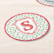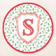 Grandmillennial Preppy Holly Monogram Crest Round Paper Coaster