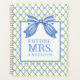 This trellis design features a very chic blue and green lattice patterned background with a coordinating blue and white striped bow. You can personalise with your last name.