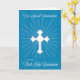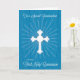Celebrate a grandnephew’s first Holy communion with this card that congratulates him and wishes him God’s blessings. A shining cross is on the centre front of this blue card.