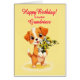 A cute birthday card for a grandniece. A cuddly puppy holding a bunch of flowers and saying 'Happy Birthday'. Celebrate a birthday with this irresistible card showcasing a sweet puppy holding a bunch of daisy flowers, perfect for melting hearts.