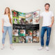 Grandpa Grandfather Grandad Photo Collage Black Fleece Blanket