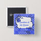 Grandpa of the bride, groom wedding button. Cool blue polka dots and swirl floral design with wedding date. Also for father, brother, uncle of the bride or groom.