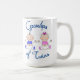 Cute coffee mug with "Grandpa of Twins" in blue and cute baby boy and girl in blue and pink clothes.