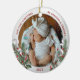 Silver frame adorned with holly and pine ornament to display your own special memory. The bright and shiny silver border encircles your photos. The holly, pine and silk ribbon complete the whole design with a joyful atmosphere of the holiday season. On the back side, the quotes on the edge of the frame show your deep love and pride in being new grandma and grandpa. Easily place your memorable photos in place of the template photo as well as the baby name and year to make your own ones and send them to your friends and family. What a fantastic way to celebrate your first Christmas as grandparents!