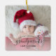 Help them celebrate their first grandchild with this beautiful modern keepsake ornament. The off-black text reads "Our first Christmas as grandparents," with the word "grandparents" in elegant handwriting script with flourishes before and after. Easily replace the sample image with your favourite photo of the new baby, and add his or her name and the year. A white gradient filter helps make the text pop.