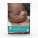 Introducing our elegant and stylish Grandparent keepsake photo block, designed with a modern script in white, beautifully contrasted against a captivating teal background with little white hearts. This heartwarming block proudly displays the phrase promoted to Grandparents, making it a perfect gift for new grandparents. But it doesn't stop there – this personalised keepsake can be customised with your baby's name, birthdate, and cherished photo. Celebrate the arrival of a precious little one in a contemporary and meaningful way with this striking photo block - truly an exceptional gift for grandma and grandpa.