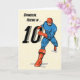 Soon your Grandson will be ten and here you have the amazing card you need to congratulate him on his 10th Birthday. A strong superhero wearing a blue and red suit, comes running with a big number.