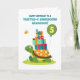 A bright and cheerful 5th birthday card for a special grandson, featuring a smiling green turtle carrying a stack of colourful presents with a balloon showing the number 5. Little friends – a bee, ladybug, and caterpillar – join the celebration to make this design extra fun and playful. Perfect for any turtle-loving boy to bring big birthday smiles.