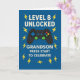 A bold and playful birthday card for your gaming-loving grandson turning 8, featuring a game controller and striking lightning bolt background in vivid blues and yellows. The front text reads “LEVEL 8 UNLOCKED,” celebrating his new age with gamer flair. Inside message is upbeat and encouraging, perfect for a growing boy who loves games and brings joy to your family.