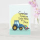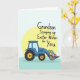 Designed with a sturdy, stylized azure utility vehicle at the center, the scene feels like a small gesture of care delivered with steady determination 🐰. Behind it sits a soft, sun-like yellow circle that frames the vehicle and gives the whole layout a gentle glow. In the front scoop, a clustered pile of decorated egg shapes shows stripes, dots, and small pattern accents in mixed cheerful colors, as if someone took time to make each one a little different for you 🌷. The background shifts through cool blue and green tones, keeping the focus on the warm yellow circle and the bright cargo. Above the illustration, the message “Grandson Scooping up Easter Wishes for You” is placed in a flowing, hand-drawn style, set in a dark tone that stands out clearly against the lighter sky area. The vehicle’s forward-leaning stance and the careful way the scoop holds the eggs suggest a fond, thoughtful connection, like a family member bringing a sweet surprise. Simple outlines and flat color fills give it a modern look while still feeling friendly and approachable. Small details like the vehicle’s dark wheels, the curved scoop edge, and the patterned eggs sit crisply against the soft yellow circle.