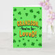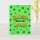 This greeting card features the message “GRANDSON, -You’re So- LoVeD!” centered in large, raised-looking letters that feel like a big hug 💚. The main text is bright orange with a deeper orange shading, and a green shadow underneath adds extra depth against the background. “GRANDSON” sits above the rest of the words, while “LoVeD!” is the most eye-catching line, using mixed capitalization and an exclamation point that reads like an excited grin. Behind the lettering is a lime-green field that brings to mind fresh spring days and a St. Patrick’s Day look ☘️. Deep forest-green shamrocks and clovers are scattered all around, some with three leaves and a few hinting at four, like little lucky surprises. The layout keeps the words in the spotlight while the clovers frame them, giving the whole scene a friendly, affectionate energy. The clovers vary in size and angle, dotting the corners and edges like a patterned border on the bright green background.