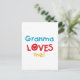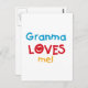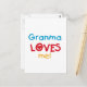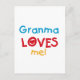 Granma Loves Me T-shirts, bodysuits, cards, bags, and other items with a blue, red, and yellow text design.