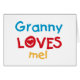 Granny Loves Me T-shirts, cards, stickers, bodysuits bags, and more with colourful red, yellow, and blue text and heart design. These Granny Loves me apparel and gift items will make granny smile!