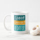 Granny Needs Coffee Mug. This cute coffee mug makes the perfect gift for any grandmother whose grandchildren call her Granny instead of Grandma. This funny coffee mug says "Granny needs coffee." It has a white background with teal / turquoise / aqua and yellow graphics.