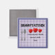 You'll love this gingham Granny's Kitchen magnet. The background is purple gingham. Message has read hearts and says "Homemade Meals served with love."