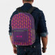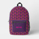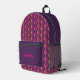 Add some purplelicious colour to your day with my Grape Expectations backpack. This retro pattern has big 1970s vibes and was inspired by the disco era with a groovy purple colour palette featuring dark grape purple, bright purple, magenta, golden yellow and orange in a funky hourglass shape. The front pocket is ready to be personalised with you monogram in bright pink letters.