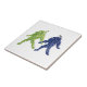 Grape Friends decorative tile. A pair of grape bunches, one green and one purple, walk companionably hand-in-hand. The stem of the green bunch seems to be looking at the purple bunch. The purple grape stem eagerly returns the glance.