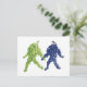 Grape Friends postcard. A pair of grape bunches, one green and one purple, walk companionably hand-in-hand. The stem of the green bunch seems to be looking at the purple bunch. The purple grape stem eagerly returns the glance.