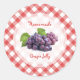Customisable retro stickers for homemade grape jam or jelly preserves with fresh grapes on red and white gingham tablecloth pattern. They can be stuck on the lid or on the jar itself, and they can be personalised with custom text. Other preserve stickers and labels also available!