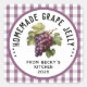 Editable homemade grape jelly canning label featuring a bunch of red grapes and chequered pattern. Make your own canning labels for your favourite homemade recipes. Perfect for preserves, homemade gifts or as kitchen pantry organiser.
