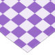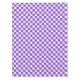 A purple and white chequerboard pattern with alternating squares, creating a balanced design. The vibrant colours give a playful, energetic feel.