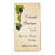 A grapevine with four clusters of wine grapes align along the left side of this label. The grapevine snakes behind the grapes against a parchment background. A great label to use on a special gift of wine or at a wedding. Available with matching products as well as a horizontal orientation.