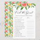 Find the guests. Mingle and chat with the guests to find the answer to the questions. | Add these fun and playful shower game card to your event. This customisable find the guest game card features watercolor illustrations of grapefruits and oranges with greenery accents. Personalise by adding your questions. This citrus shower guessing game card is perfect for summer baby showers and summer bridal showers.