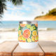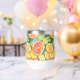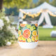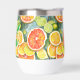 A watercolor ai illustration pattern of lemons, limes, oranges and grapefruits. Juicy citrus in coral, yellow and lime green personalised tumbler.