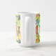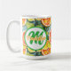 A watercolor ai illustration pattern of lemons, limes, oranges and grapefruits. Juicy citrus in coral, yellow and lime green personalised coffee mug.