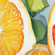 A watercolor ai illustration pattern of lemons, limes, oranges and grapefruits. Juicy citrus in coral, yellow and lime green.
